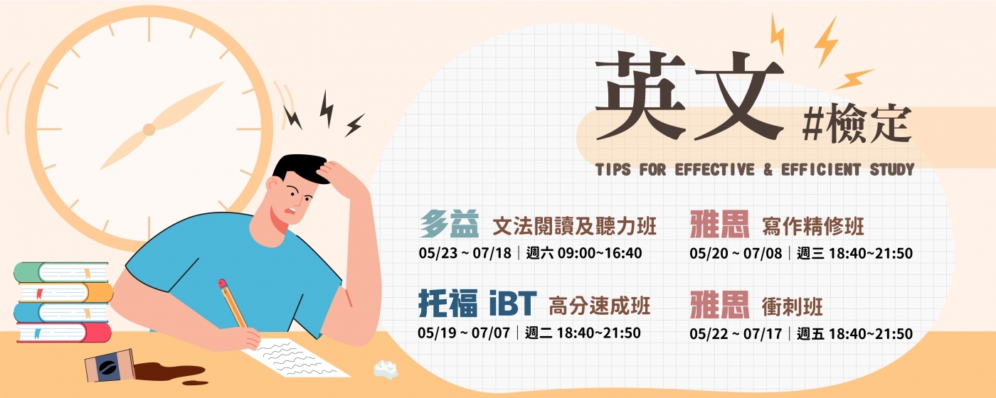 分科專攻,效果立見,可單科加強文法、會話、寫作、檢定、留學考試等課程。