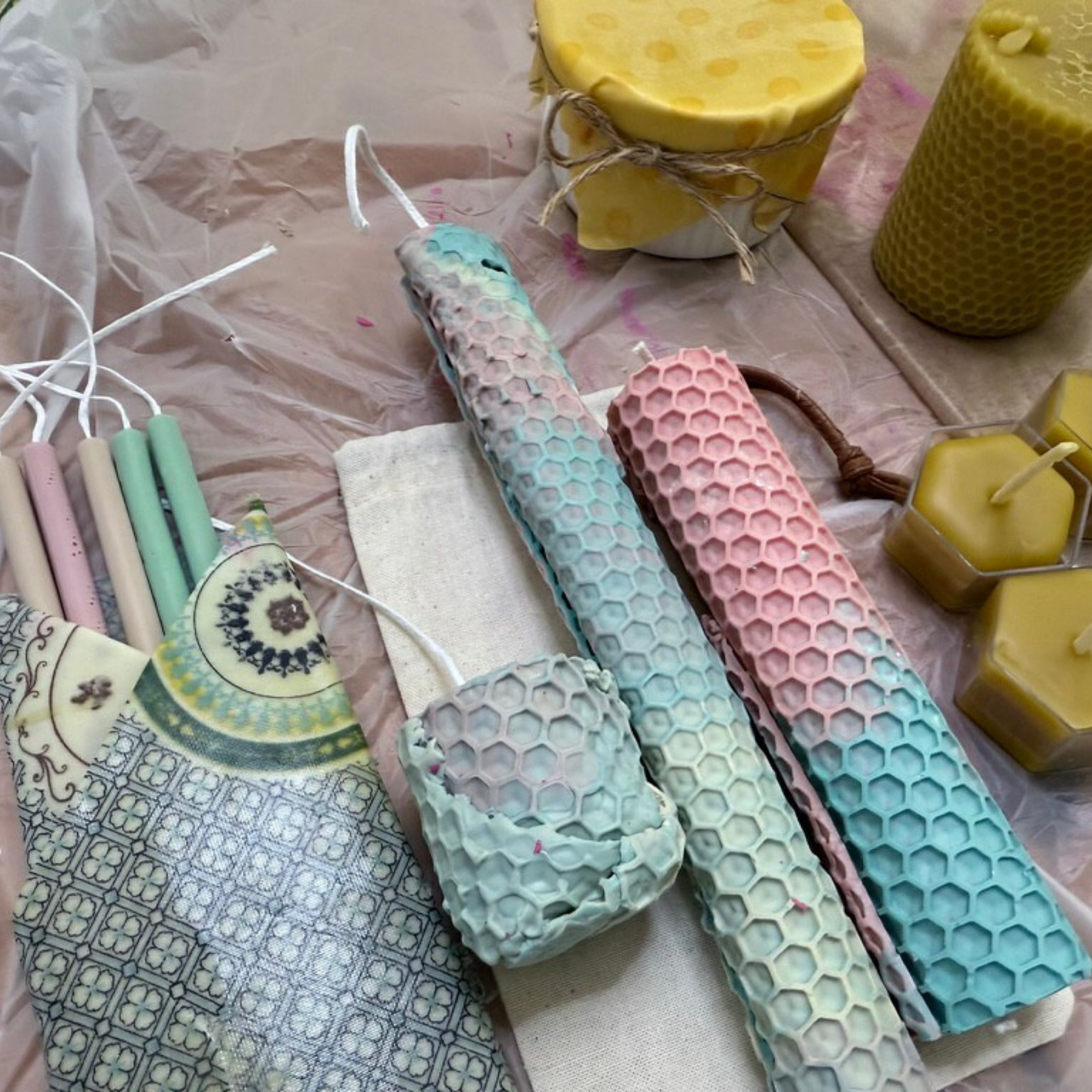 | 第四週 | 三色漸層柱蠟、蜂蠟柱蠟(蠟液在高溫下顏色分離不混色,天然的蠟片如 何二次製作)。 |