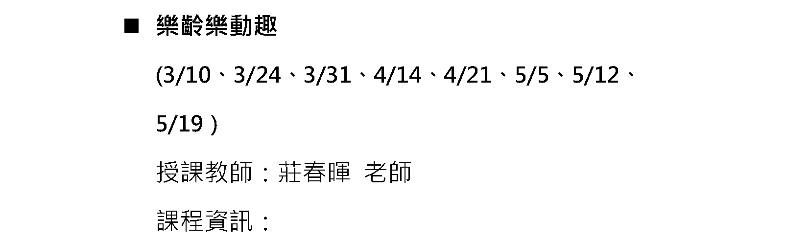 樂齡樂動趣 授課老師:莊春暉老師 |