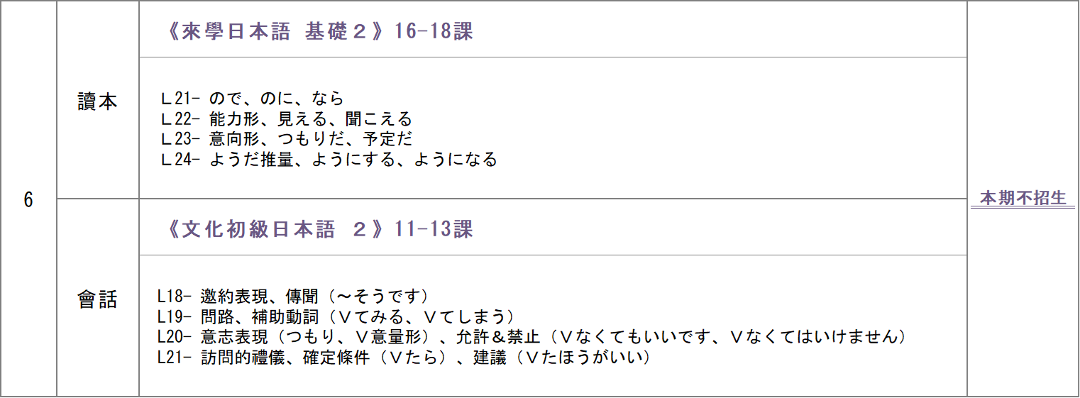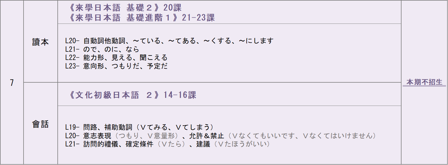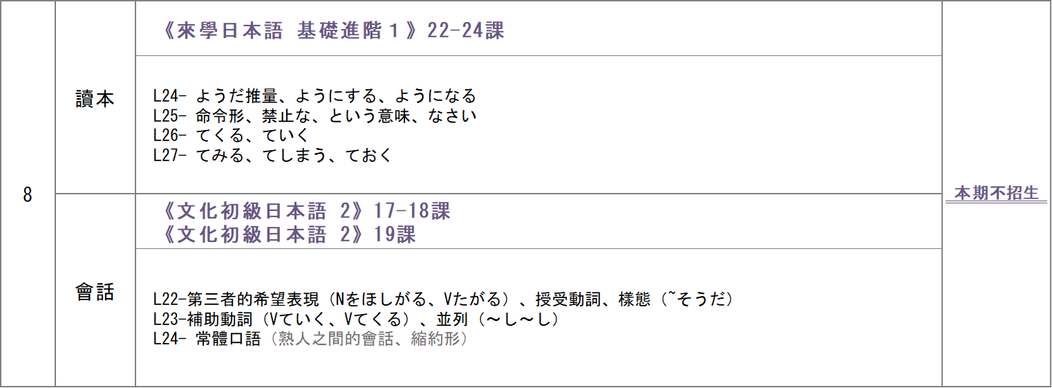 日文經常班雙日班進度總表