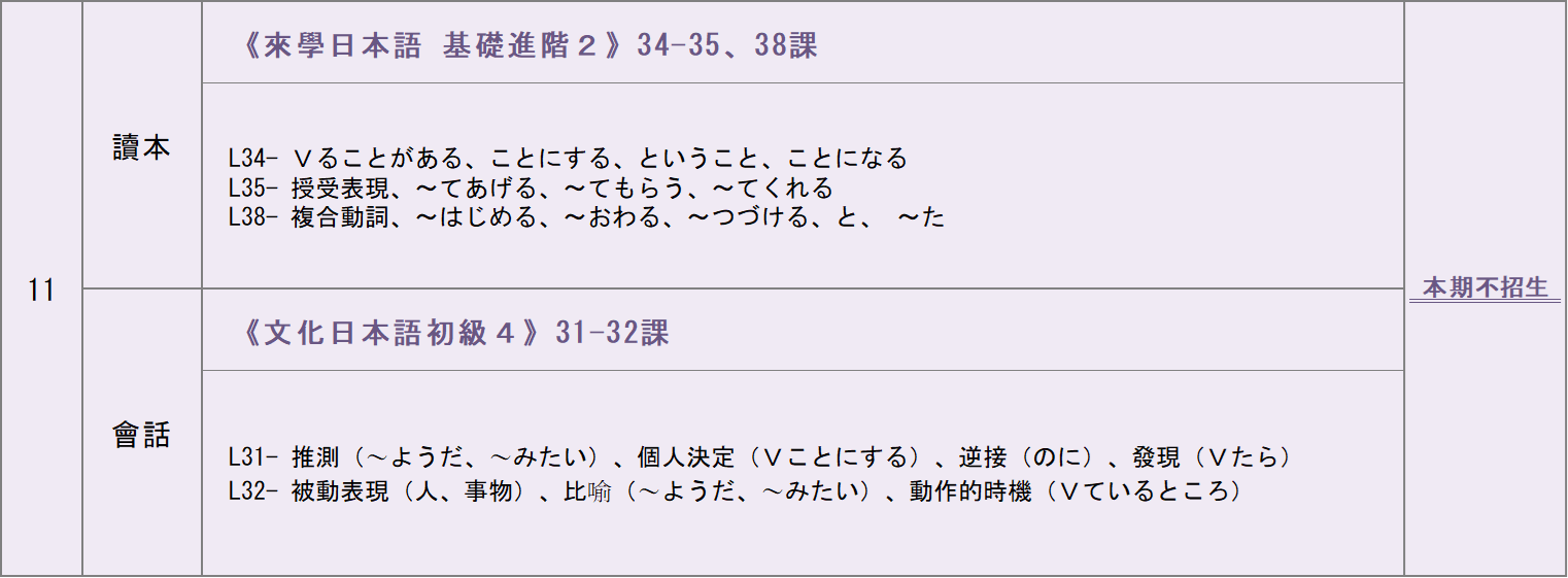 日文經常班單日班進度總表