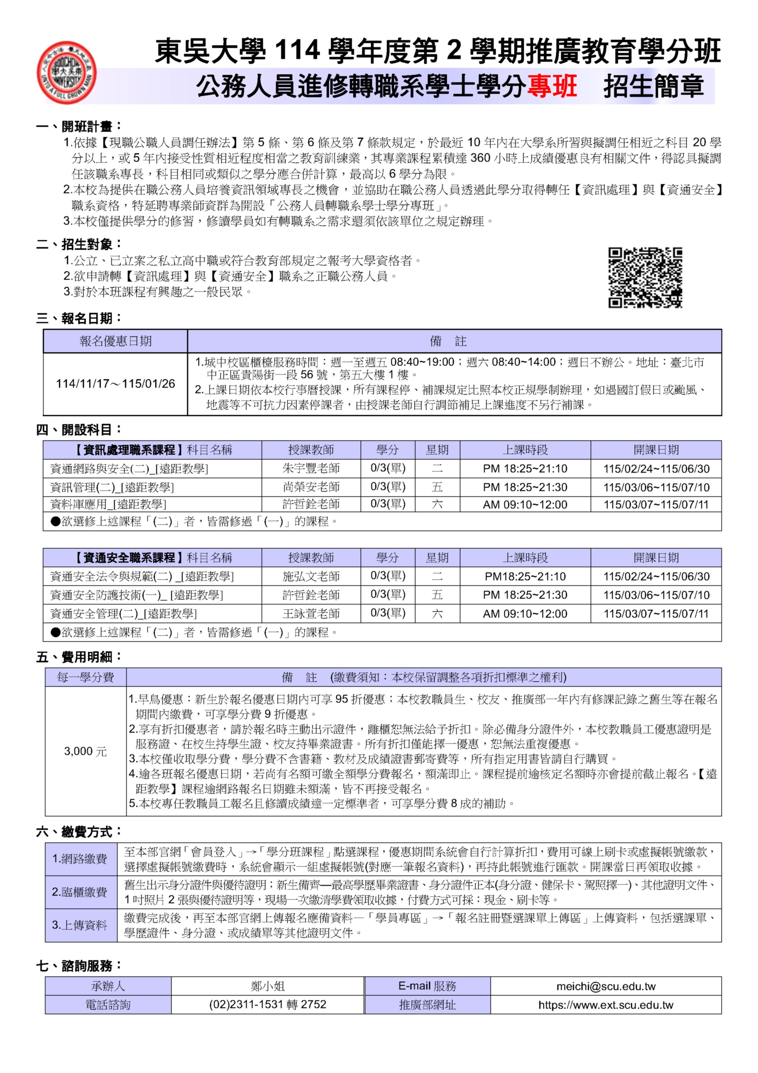 【優惠快訊】1142公務人員[資訊處理]暨[資通安全]轉職系學士學分專班折扣優惠至115/1/26止