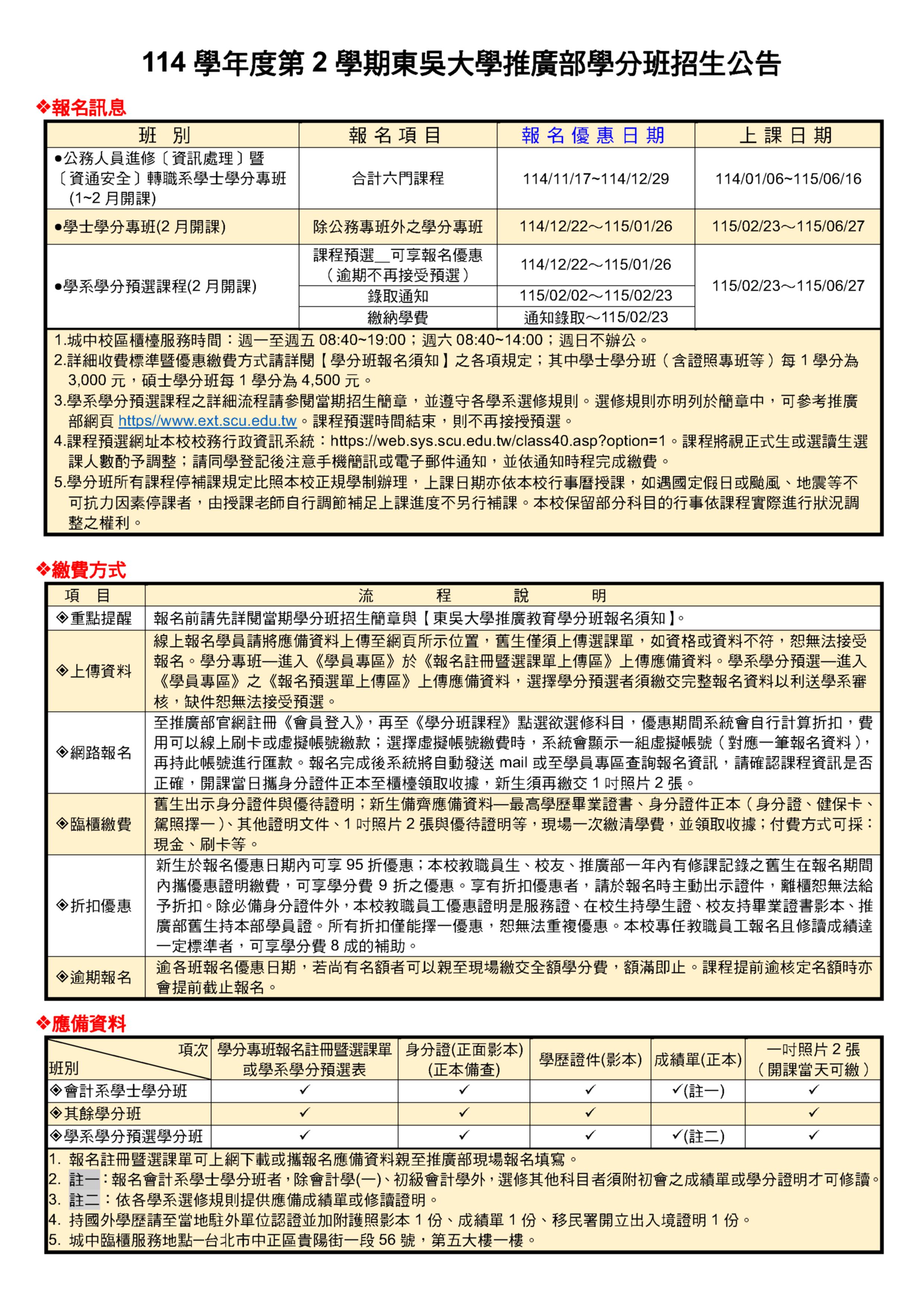 114學年度第2學期修讀學分班報名須知